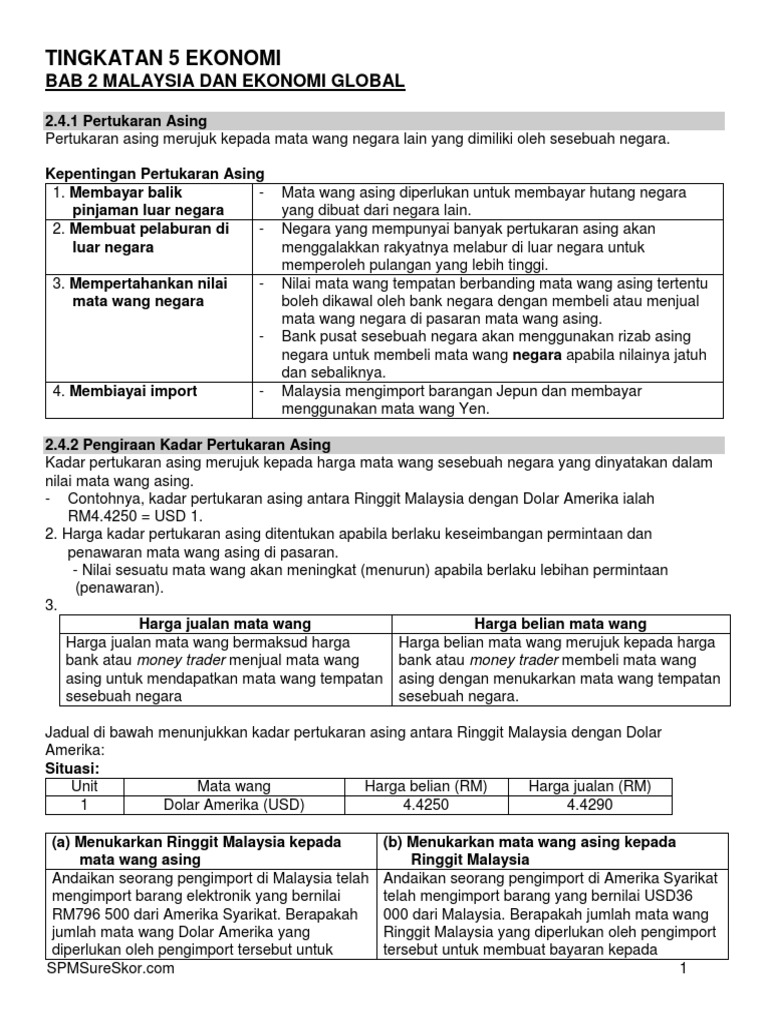 Topik 6 4 Malaysia Dan Ekonomi Kadar Pertukaran Asing Jom Tuisyen